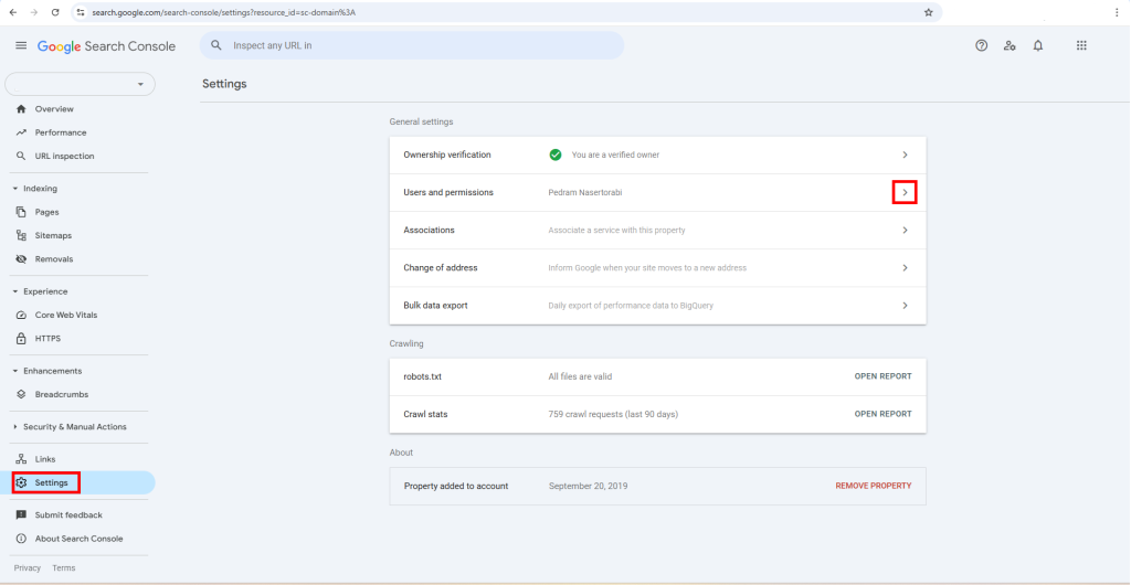 حالا وارد سرچ کنسول سایت شوید.